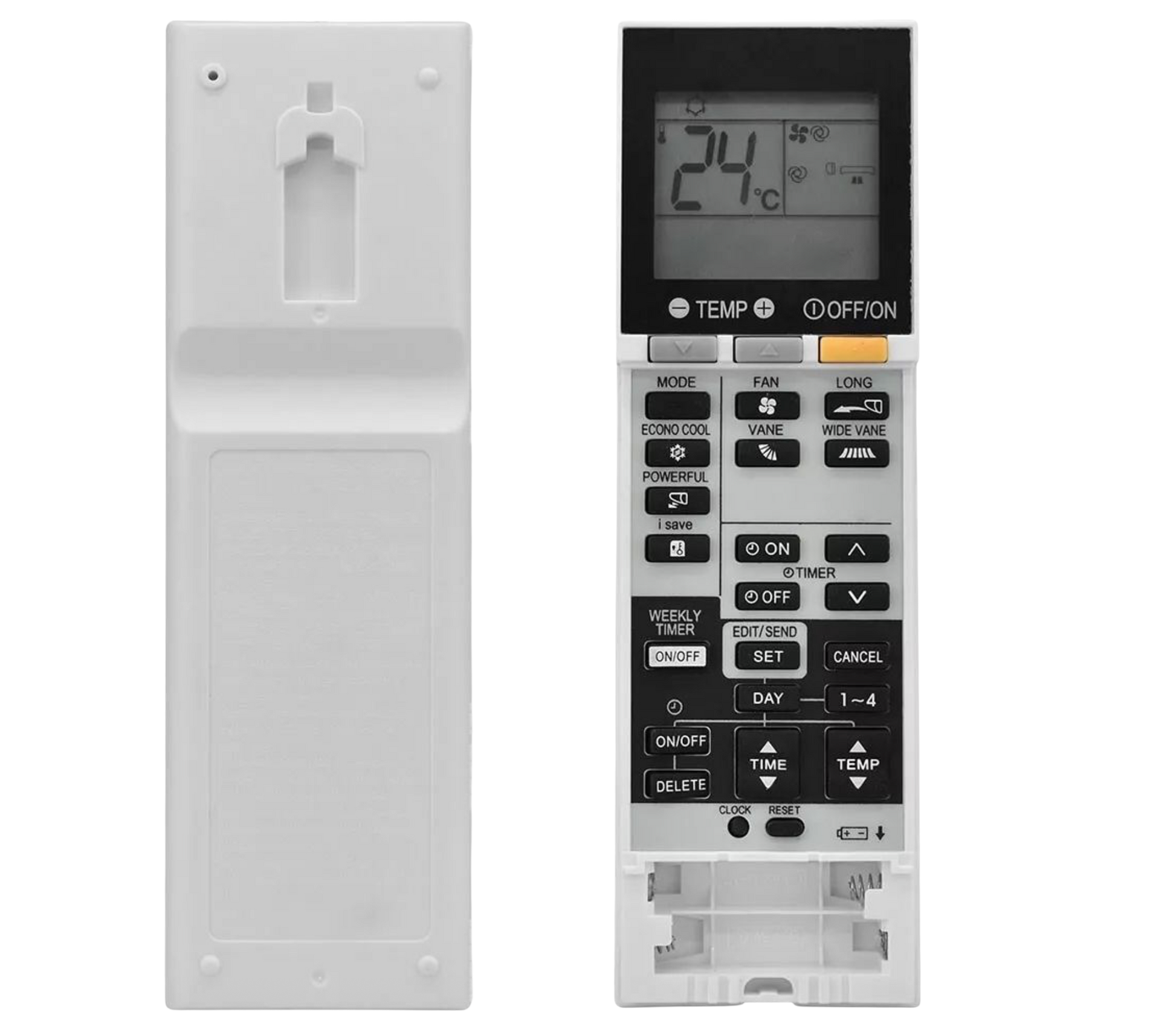 The Mitsubishi Electric Air Conditioner Remote is a fast replacement. Whether your current remote is broken, or you simply want a new one, the remote has got you covered! Working just like the original one, it's a perfect choice for you. No programming required, simply insert batteries and press the reset button on the remote to use this unit.